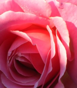 When I got home from my walk I checked my garden. A rose bush has been growing behind a fence for years. This rose blossomed after a recent storm blew away all of the other petals, and its first sunlight of the day had yet to light more than half and hadn’t evaporated the dew. None of the beauty happened suddenly and I’m sure that by now it is in full, glorious sunshine.