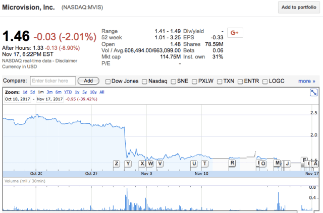 Good news? In the last month, MVIS is down ~39% and after hours is down another ~9%.
