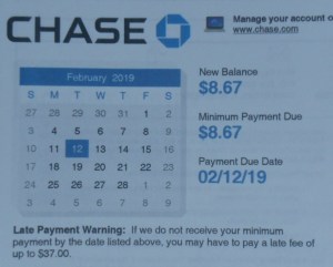 It sounds simple; “Pay down your credit” which is really pay down your debts. The reality is more complicated with extra fees, dropped credit limits, penalized credit ratings, and a persistence that worsens without sacrifice. Even now, my bill isn’t simple and hasn’t necessarily recovered. Take another look at it. The balance is $8.67 and the minimum payment is also $8.67. The late fee penalty is $37.00. How about one month with a minimum payment of zero? I expect to pay in full and on time, which is now much more manageable, but the pressure persists – and so does the credit limit.