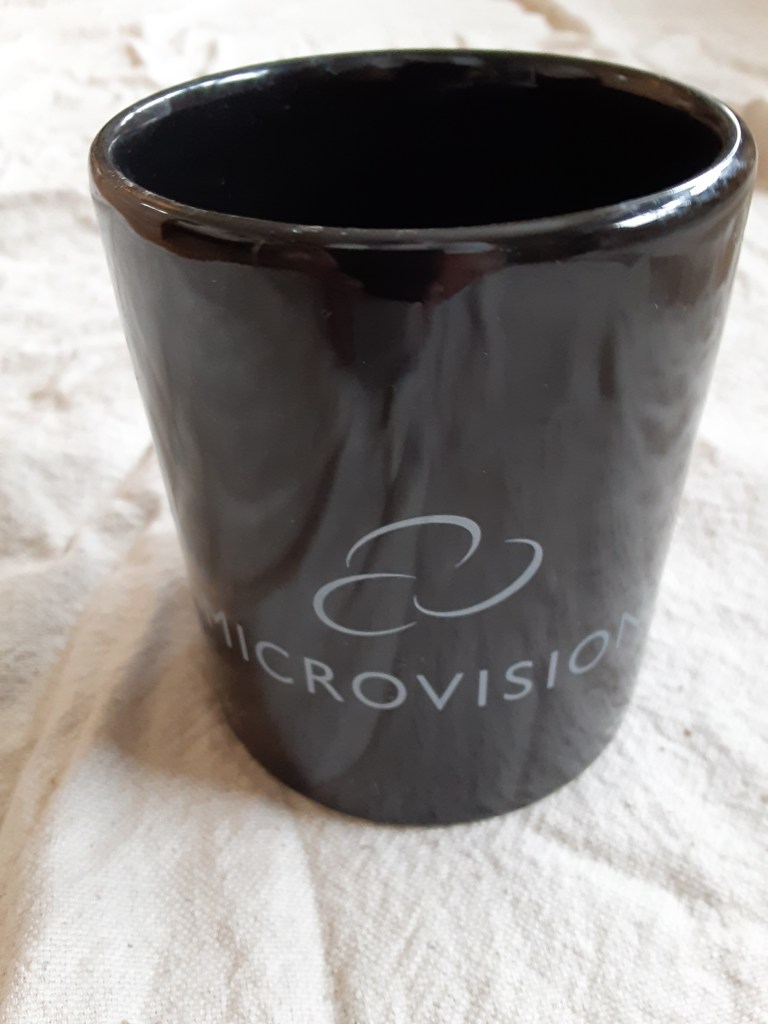 We’re in the drumroll period for MicroVision. An earnings report in a few days. An online stockholder’s meeting in about a month. (Not expecting them to mail us doughnuts, coffee, trinkets, and demo units. I do miss the meetings, and meeting the other shareholders.) Maybe I’ll set that mug aside, just in case any optimism I have is greatly exceeded. Champagne? Whiskey? Maybe just tea?