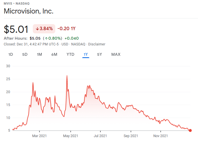 In April 2020, MVIS was priced at $0.15. Dismal times for my portfolio. By the end of 2020 it had climbed to just about $5. Hope! The percentage rise was great, but a large percentage increase of a small number can still be a small number. But that hope, that was valuable. Within the first quarter of 2021, MVIS rose to $28, with some interesting intra-day spikes. Investor sentiment carried my sentiments higher, with the potential of easing lots of monetary and personal anxieties. By mid-year it was back to just over $16. Now, it is back to about where it was 12 months ago; ~$5.