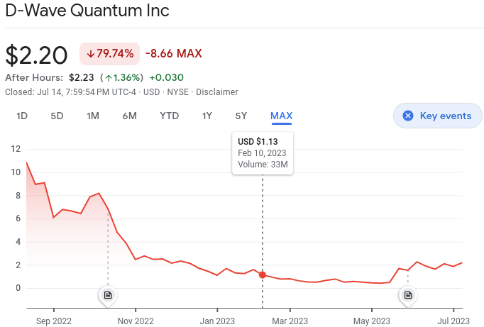 Is ignorance keeping QBTS’s stock price down? I only see data from August 2022, despite the company being founded in 1999. That’s a long time starting up to get to be a start up. Alone, quantum computer could become an old overnight success; and, ironically, could possibly fade as nothing more than a technological curiosity.