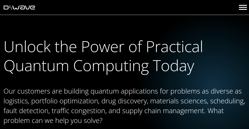 And even QBTS deserves an explanation. Quantum computing is a revolutionary computer architecture and business approach. Our ubiquitous computers are binary and digital. They operate on bits that are either ‘Yes’ or ‘No’, ‘1’ or ‘0’, high-voltage pr low-voltage, ‘And’ or ‘Or’ or equally arcane choices – a very black and white world. Something is either this or that. That’s true for mainframes, laptops, and smartphones. Traditional computers use bits. Quantum computers use quantum bits, q-bits, (QBTS, get it?) devices that trap and use quantum particles and concepts. Quantum computing operates on probabilities and the reality that quantum computers can consider two truths are once; something can temporarily both Yes and No, effectively. There are very few companies building quantum computers. QBTS is one of them.