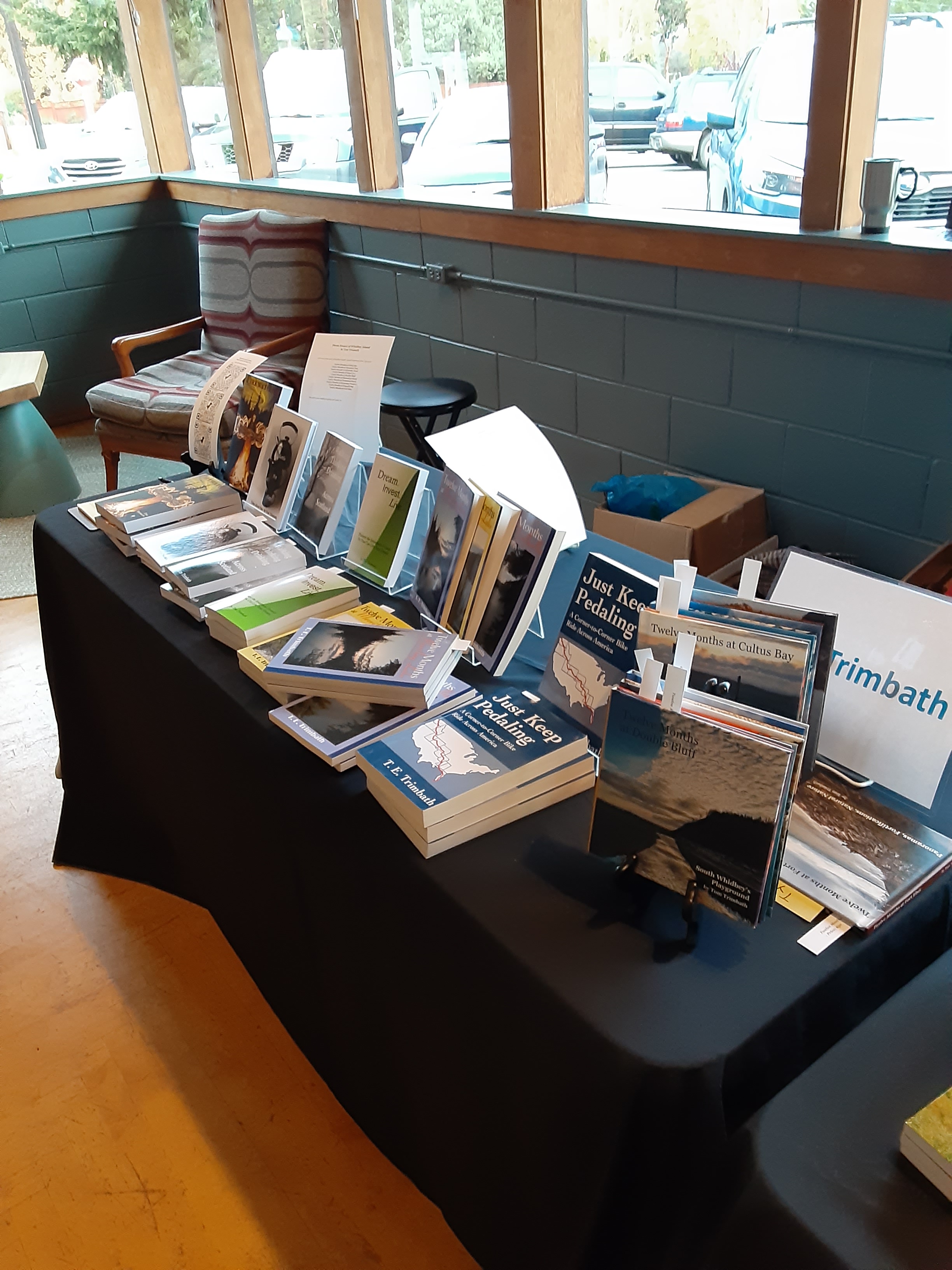 Can I use a more boring title? I don’t know. I’m too tired to think of one. I’m also too wired to not write; so, I write. Don’t be surprised. How else do you think a writer can unwind, especially after such an energetic event. For those who weren’t following the social media news (a niche) for Whidbey Island (a niche within a niche) for local authors (a niche within a niche within a niche) Sno-Isle Library System held a book fair at the Clinton Community Hall today. Thank you, Sno-Isle! (Including all of the individuals showed up to help make it happen.