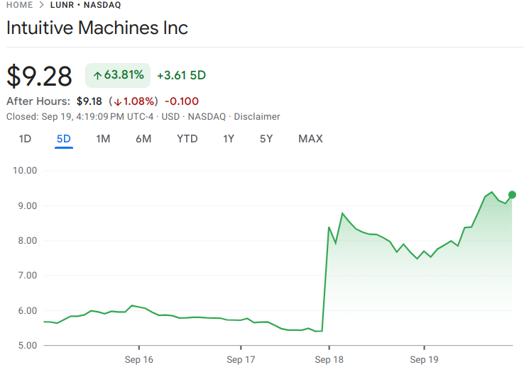 LUNR closed at $9.28, September 19, 2024. Their market cap is $1.24B. There’s that B. Nice to see it. How big can it be? This looks like a stock to watch because of its potential, but also because of its unknowns. This won’t be dull. Thank you, intuition. Got any other good ideas?