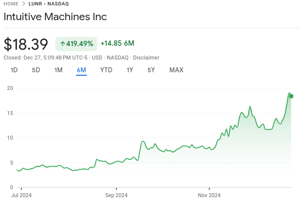 December 27, 2024 – LUNR up ~419%, QBTS up ~761% in 6 months