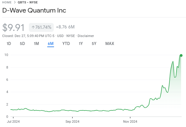 December 27, 2024 – LUNR up ~419%, QBTS up ~761% in 6 months