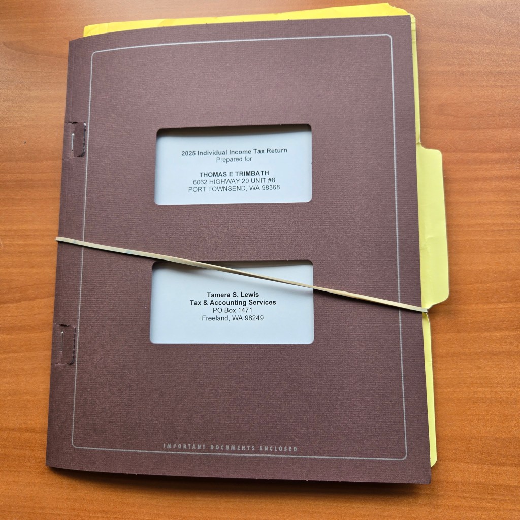My taxes are done! What I mean is, I filed and paid my taxes. Taxes are never done. And, I give up. My taxes weren’t done by me; my taxes were done by a professional. I’ve given up trying to figure out forms that evidently take professional expertise. I paid their fee. They saved me money. I think it works better this way.