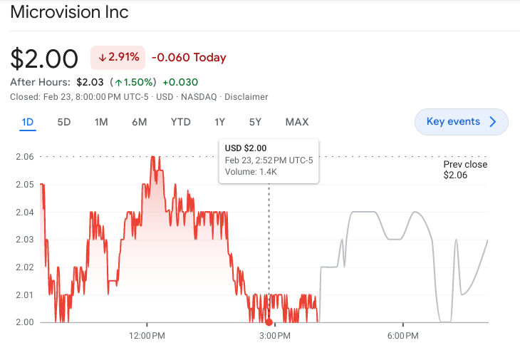 Next week, they report earnings, not necessarily product announcements. But both can happen, and I think the product announcements are past due. People need cures. Surely, more than one of MicroVision’s products will be a positive, significant, quantifiable success. In the meantime, it is time to clean up the house in case it needs to be sold; and apply for jobs still; and hope for my books and photos to sell, and while I’m at it, check that lottery ticket.